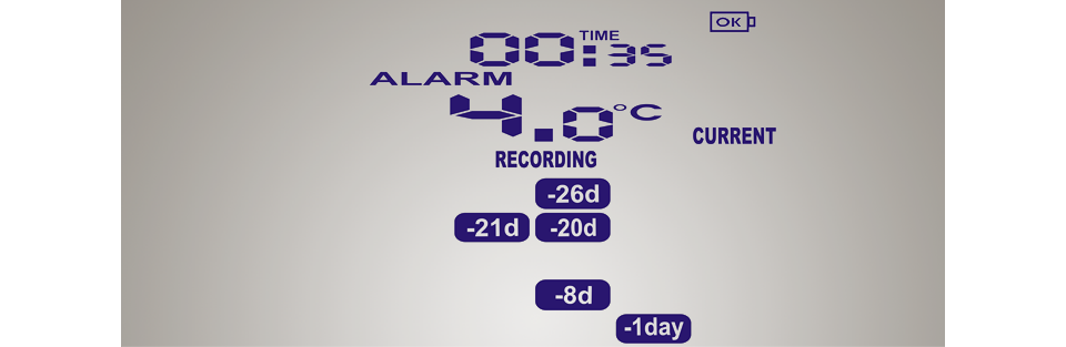 LogTag® TRID30-7 is a multi-use temperature logger with a display. Temperature readings of up to 30 days can be stored on the device as checked on the display screen. This allows for spot checking of current temperature, current time, recording status, battery level and also, alarm events with the past 1-29 days. The review button on the logger displays the minimum and maximum values for the days in question or for all the last 30 days for which data has been recorded.